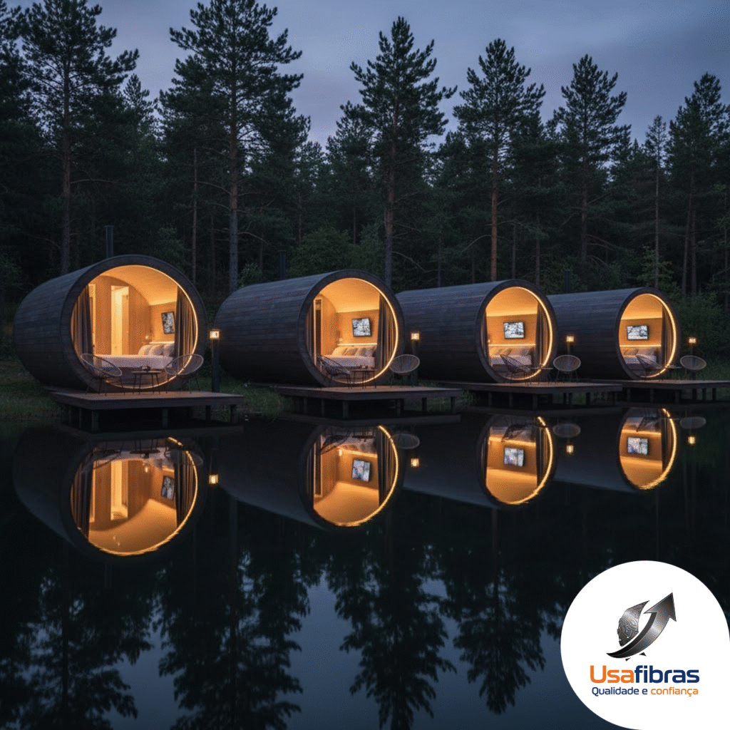 A UsaFibras eleva a hospedagem a um novo patamar, entregando não apenas unidades, mas estruturas esculturais feitas em fibra. Nossas cápsulas são pensadas para quem busca diferenciação, oferecendo um refúgio de design inovador que se integra perfeitamente a qualquer ambiente, seja ele urbano ou selvagem. Crie uma experiência visual e de conforto inigualável para seus hóspedes.